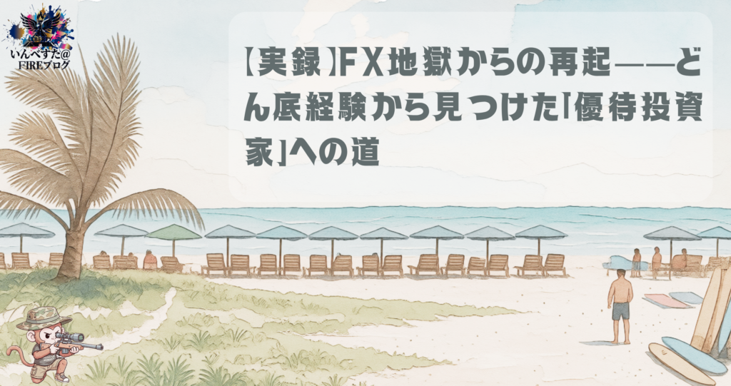 いんべすた@が語る、リアルな投資再起ストーリー こんにちは、いんべすた@です。 前回のブログでは、私の“FX地獄”――ギリシャショックで一晩にして自分の資金も、妻から借りた100万円も吹き飛ばしてしまった、あの壮絶な失敗談をお話ししました。 「終わ... -