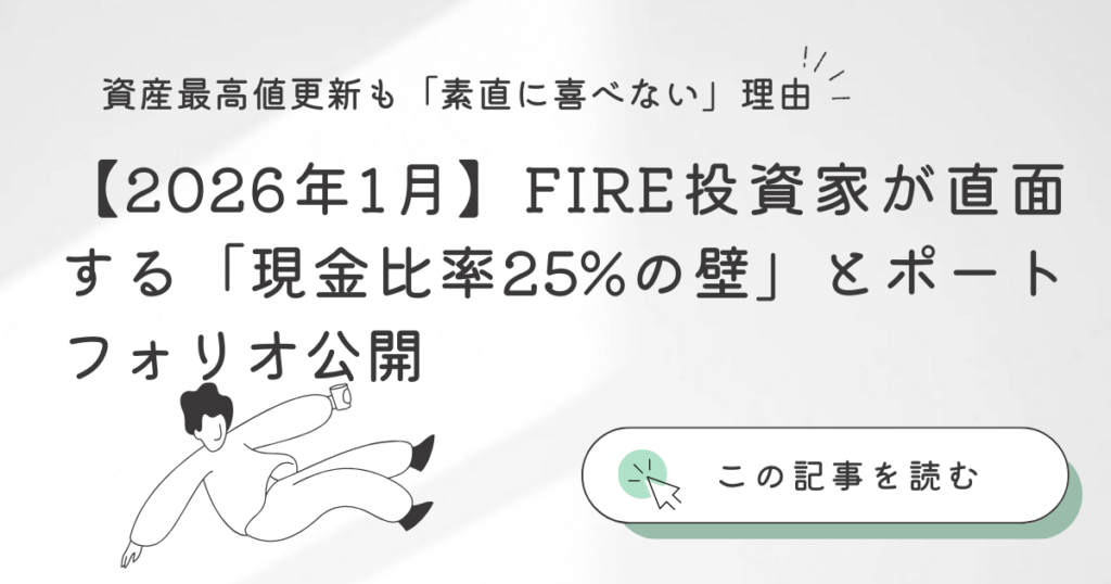 【2026年1月】資産最高値更新も「素直に喜べない」理由。FIRE投資家が直面する「現金比率25%の壁」とポートフォリオ公開