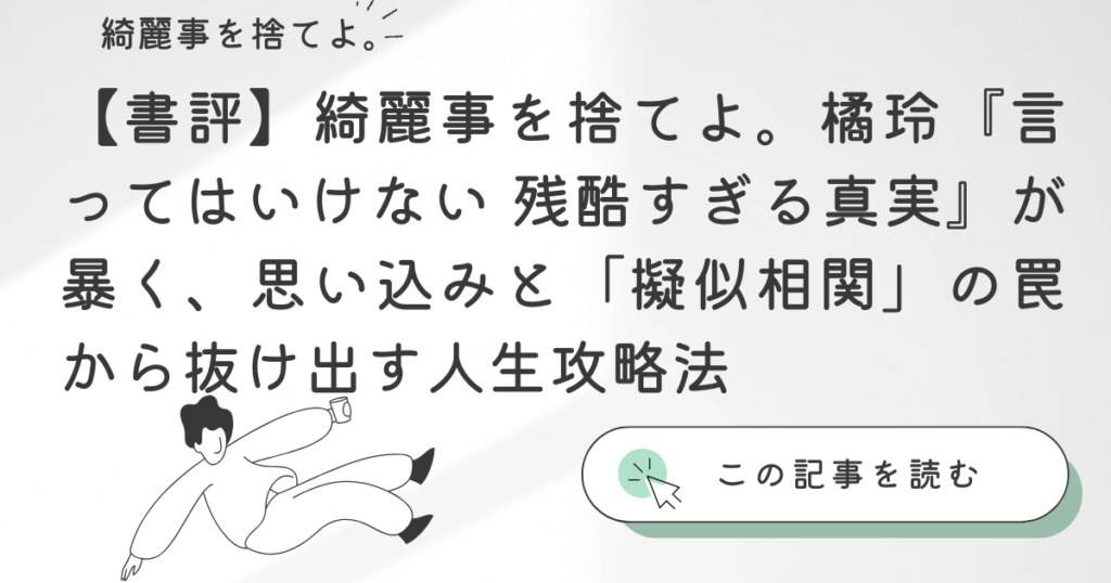【書評】綺麗事を捨てよ。橘玲『言ってはいけない 残酷すぎる真実』が暴く、思い込みと「擬似相関」の罠から抜け出す人生攻略法